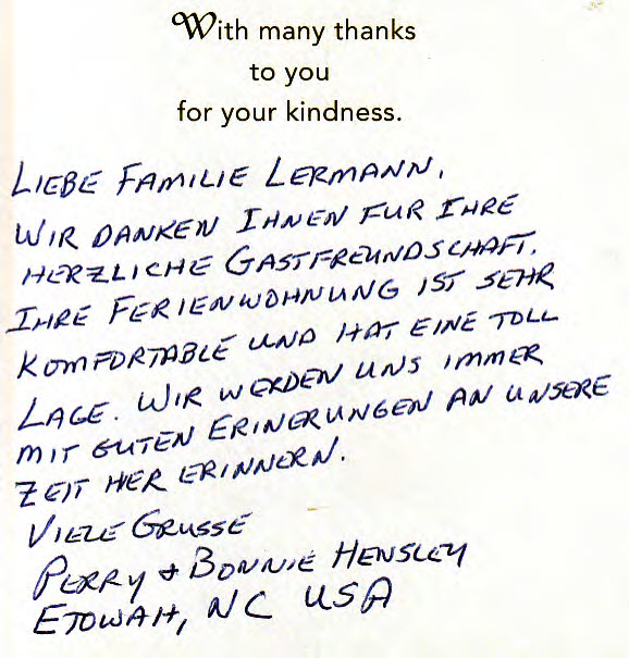 Im Juni waren wir 3 Wochen in der sehr schönen Ferienwohnung der Lermanns. Mittlerweile kenne ich schon einige Unterkünfte in Marktheidenfeld, aber diese Wohnung zählt definitiv zu den schönsten. Großzügig, praktisch, schön eingerichtet, zentral und doch sehr ruhig gelegen - mit super nette und aufmerksame Vermieter! Das WLan war etwas schwankend, aber Herr Lermann hat umgehend versucht, mit Repeater Abhilfe zu schaffen. Komme gerne wieder und kann die Wohnung jedem empfehlen.